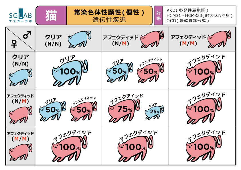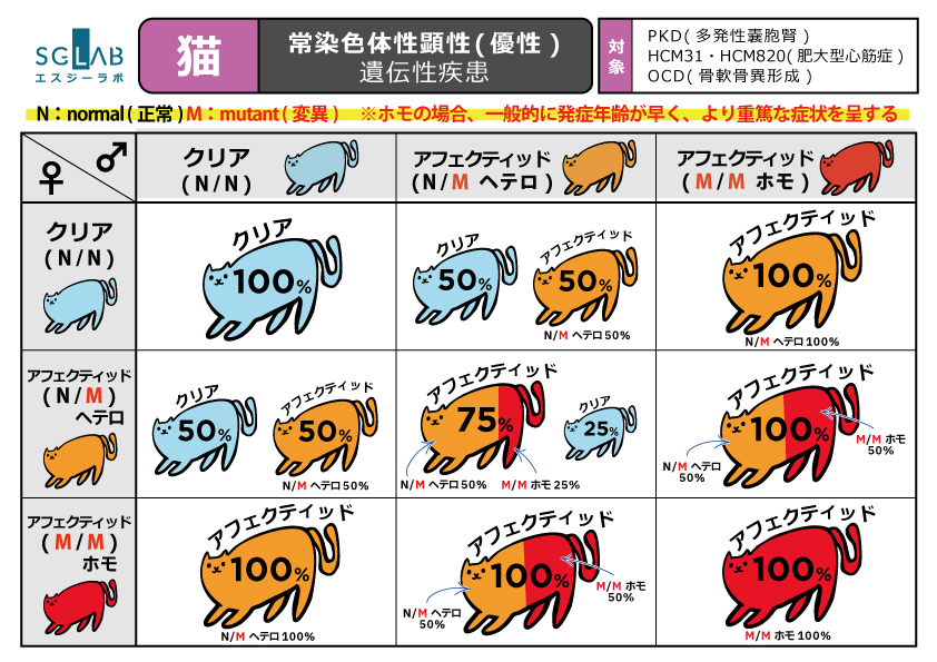 例えばネコの多発性嚢胞腎(PKD)、肥大型心筋症(HCM)です。