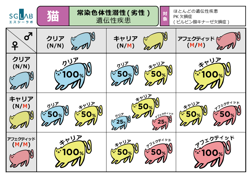 したがって、クリア同士の交配からは発症リスクのある子は生まれません。